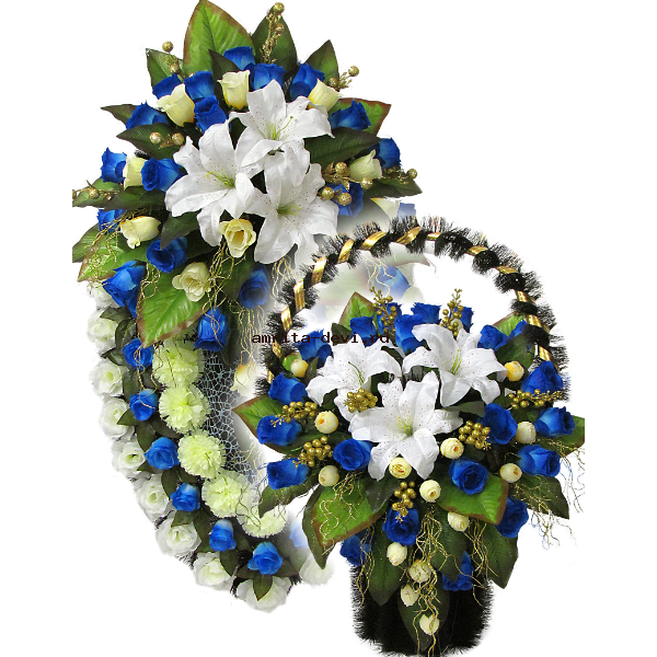 Дуэт состоит из венка С662 и корзины К420 - выполненными в одной цветовой гамме и на идентичных цветах
